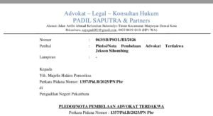 Dalam sidang di Pengadilan Negeri Pekanbaru, tim advokat dari Padil Saputra & Partners secara tegas meminta majelis hakim menyatakan dakwaan jaksa penuntut umum tidak dapat diterima atau setidak-tidaknya membebaskan terdakwa dari seluruh dakwaan.