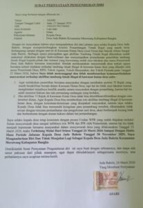 Surat pengunduran diri yang diteken pada 24 Maret 2026 itu menegaskan satu hal: kepala desa memilih mundur daripada harus tunduk pada tekanan yang mengarah pada pembiaran, bahkan legalisasi aktivitas ilegal di kawasan hutan desa dan Daerah Aliran Sungai (DAS) Jada Bahrin.
