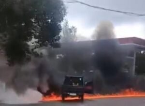 Awalnya cuma asap tipis dari bawah mobil, lalu api cepat sekali membesar,” ujar seorang saksi mata di lokasi.