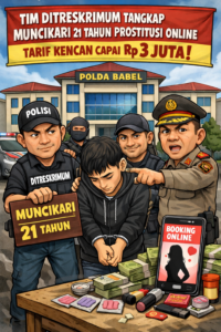 http://PJSBABEL.COM (PANGKALPINANG) — Praktik prostitusi online yang beroperasi secara terselubung di Kota Pangkalpinang akhirnya terbongkar. Tim Direktorat Reserse Kriminal Umum (Ditreskrimum) Polda Kepulauan Bangka Belitung mengamankan seorang pemuda berinisial IA (21) yang diduga kuat berperan sebagai muncikari dalam jaringan layanan kencan daring tersebut.