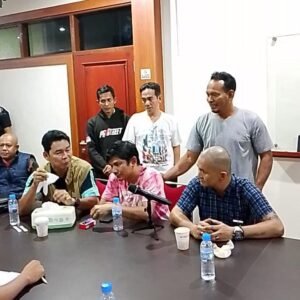 Caption : Maulid (Tersangka) menyampaikan permohonan maaf kepada Wartawan Dedi Wahyudi dan Frendy Primadana saat di mediasi oleh penyidik Polda Kep Bangka Belitung, namun mediasi perdamaian gagal, Sabtu Malam (7/3/2026).