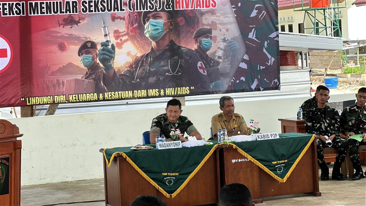 Kegiatan diikuti oleh Anggota Yonif TP 845/Ks. Sosialisasi kesehatan dibawakan oleh Kepala Bidang P2p Sukarman, S.km. dan Nara sumber dr. Shifa Azzahra Sp. Kk. Setelah pemaparan materi, kegiatan dilanjutkan dengan layanan konseling.
